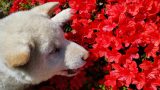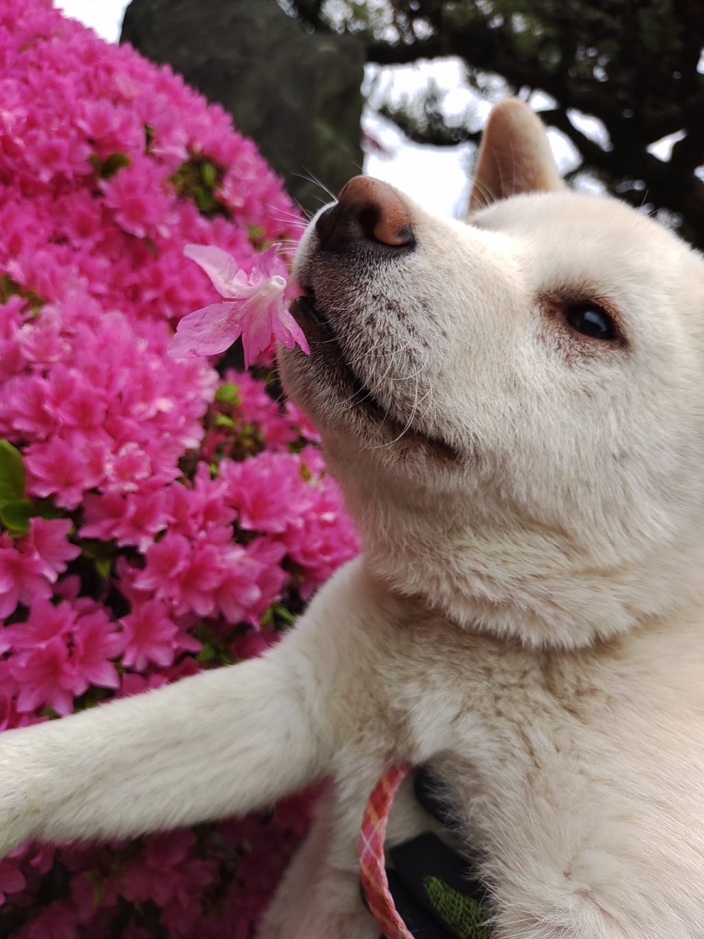 ツツジの花とポロがおたがいにひかれ合っているみたい。