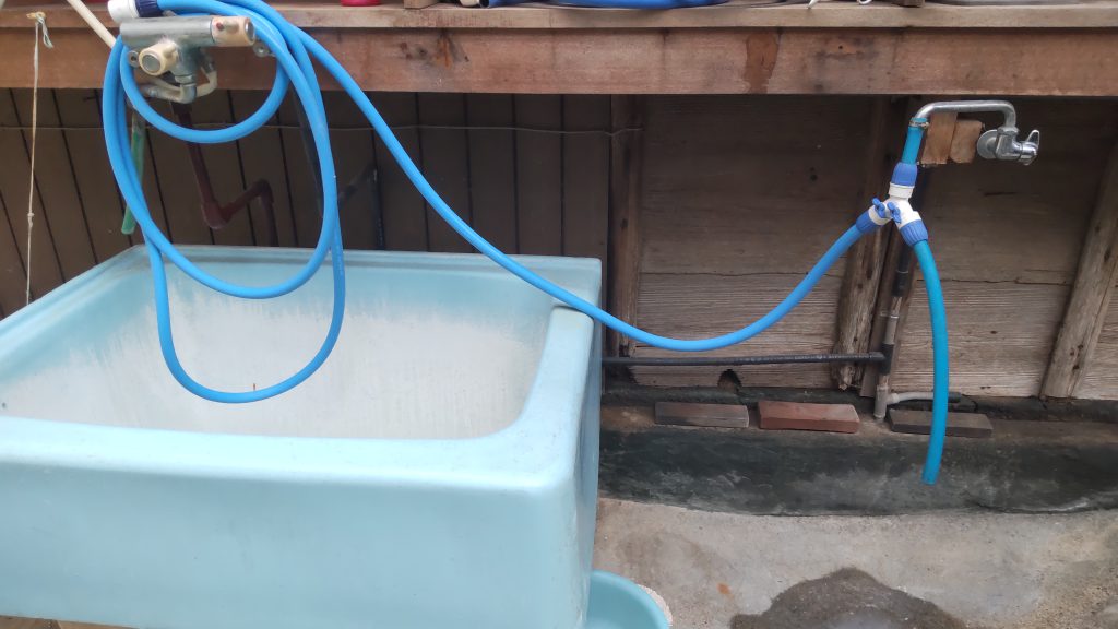 わんファミリーでは、ポロを外飼いしているため、ポロのシャンプーも外で行おうと考えました。
