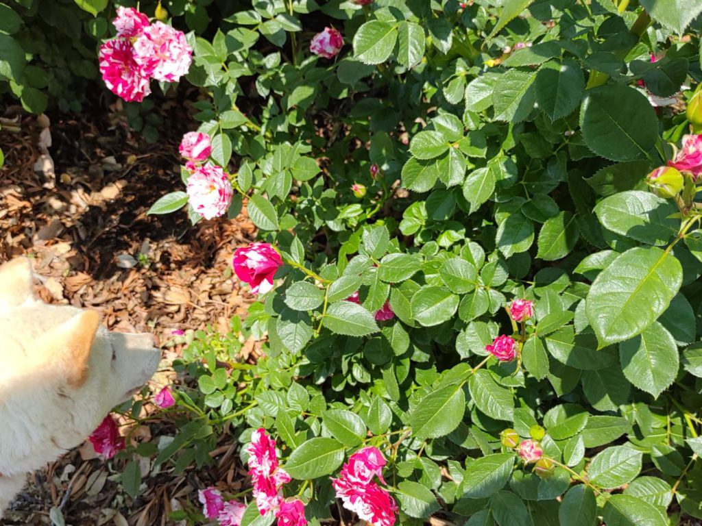バラに囲まれて、ポロとお散歩。 ワンショット X Facebook はてブ LINE コピー 2022.05.12こんにちは。柴犬の写真を見て癒やされる、わんママです。 わんファミリーでは、自宅の庭畑にバラを植えています。毎年この時期には、たくさんのバラに囲まれ、とってもいい香りがするんです。そんななかをポロと散歩しているときの1コマ。ポロもバラ好きかな?いい香りするしきれいだよね。ちなみに、花のアップ写真はこちら。何気に、花のアップ写真が上手なわん太カメラマンでした。