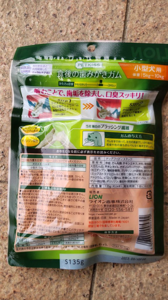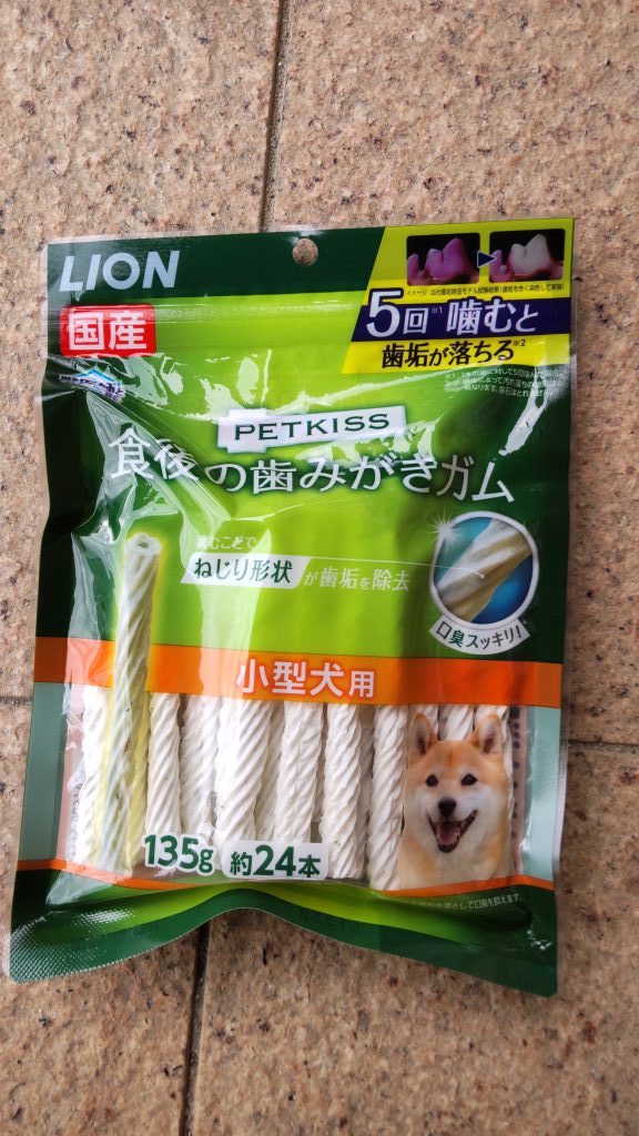 今日のワンアイテム!食後の歯磨きガム! ワンアイテム X Facebook はてブ LINE コピー 2022.07.18こんにちは、久しぶりの投稿わんパパです。今日は食後の歯みがきガムの紹介です。柴犬が載っているので、ポロも気に入ると思って買ってみました。早速、開封してあげてみます。まずは様子見パク!!離しません!気に入ってくれたようです。でも、三口ぐらいで食べちゃったので、歯磨き効果はあるか疑問です。ペットキッス 食後の歯みがきガム 小型犬用(135g)【ペットキッス】楽天24Amazon楽天Yahoo!ショッピング