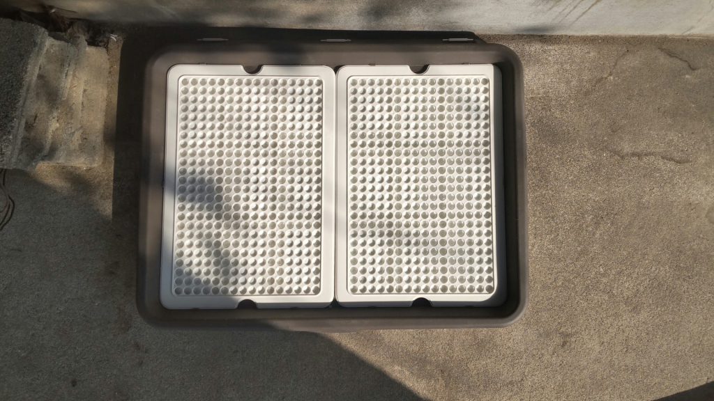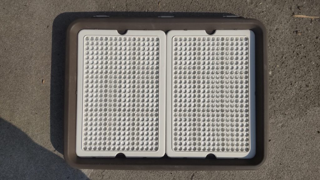ポロの様子を頻回に見に行き、トイレのサインがないか、トレーの上でトイレしているかなど、トイレの状況をチェックします。